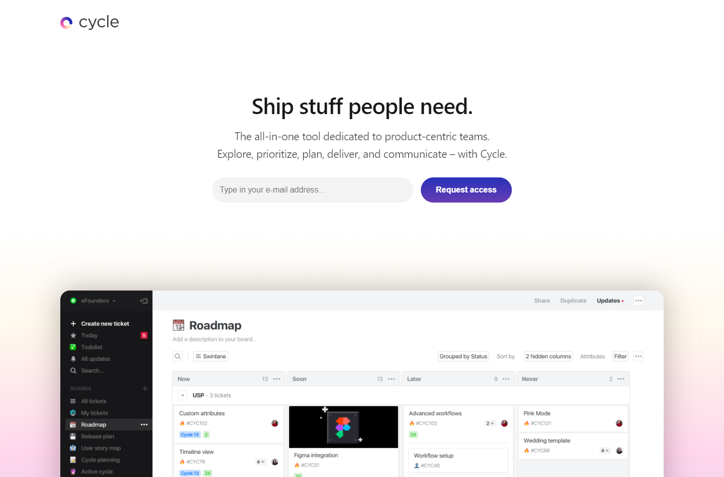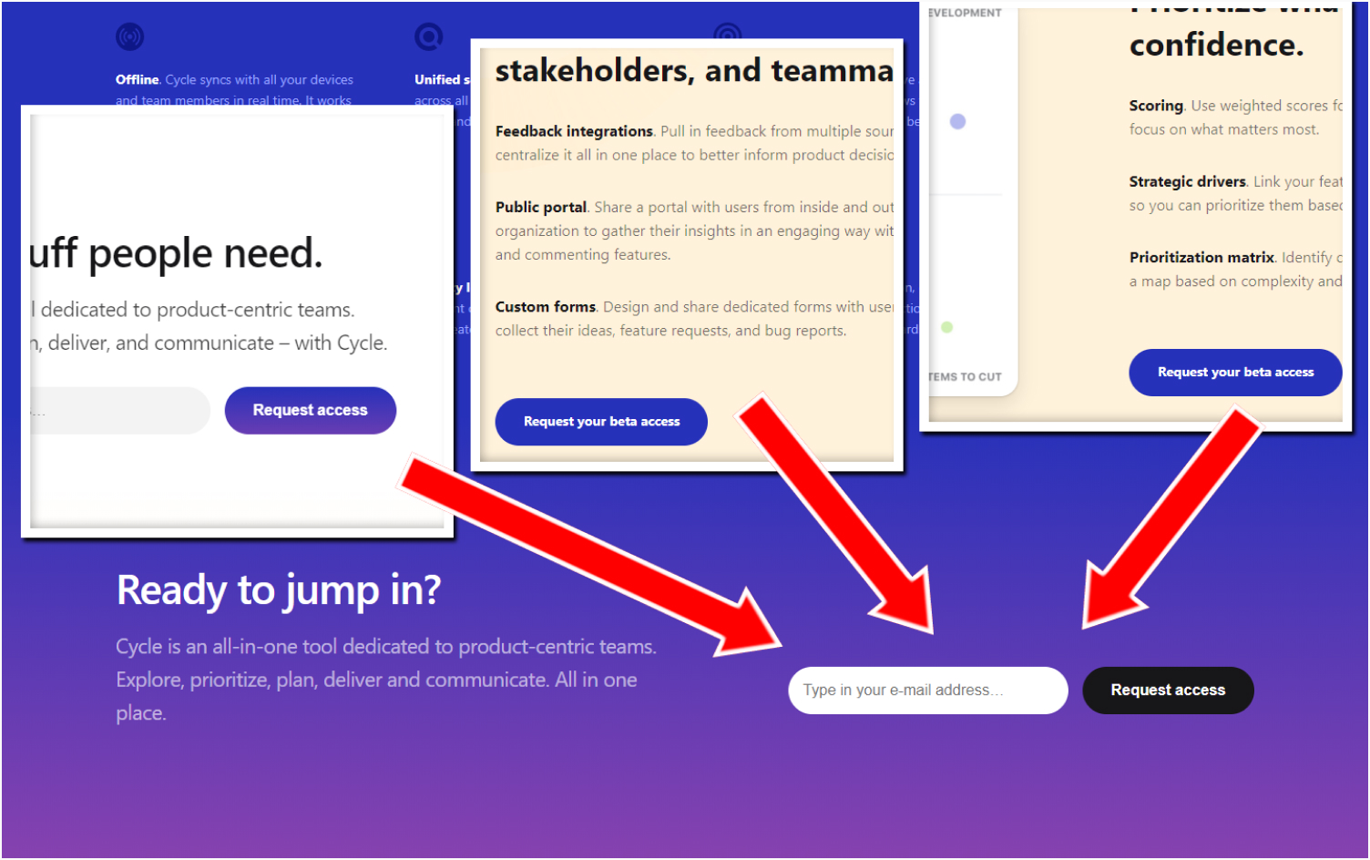 Cycle, (#28 featured above) has no navigation items. All clickable elements like buttons lead to a single call to action within the page.
