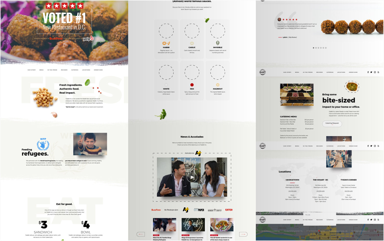 Falafel Inc, (#18 featured above) groups page content into “bitesized chunks”, not too much information but relevant information grouped together and delineated by whitespace.