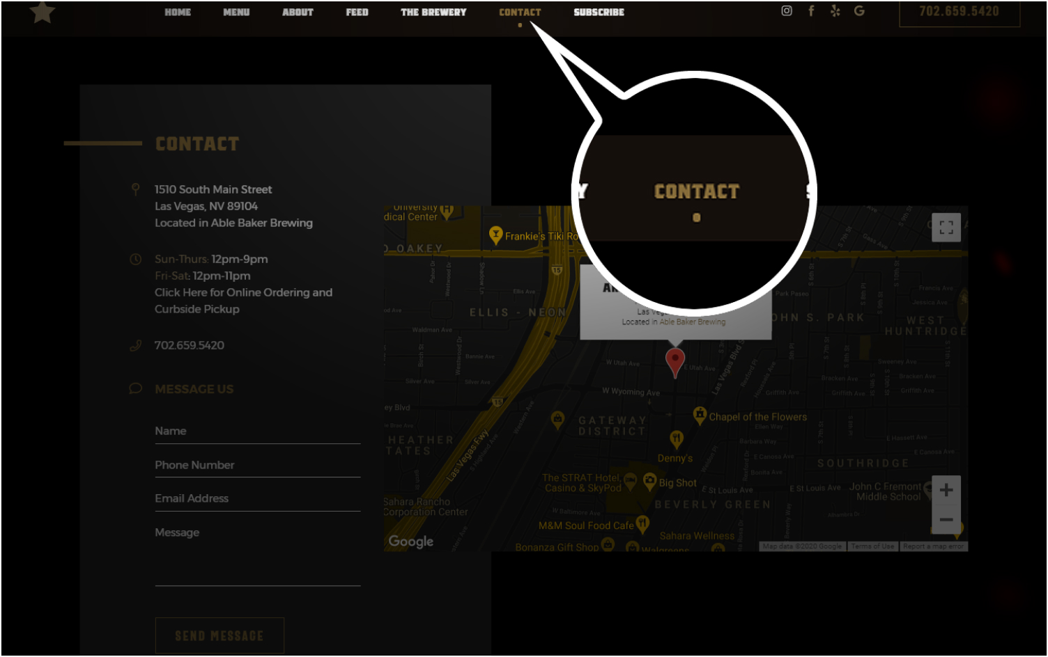 Arts District Craft and Kitchen, (#1 featured above) uses a top sticky navigation. Aside from being clickable to go to specific sections within the page, it also has indicators of where you are in the website.